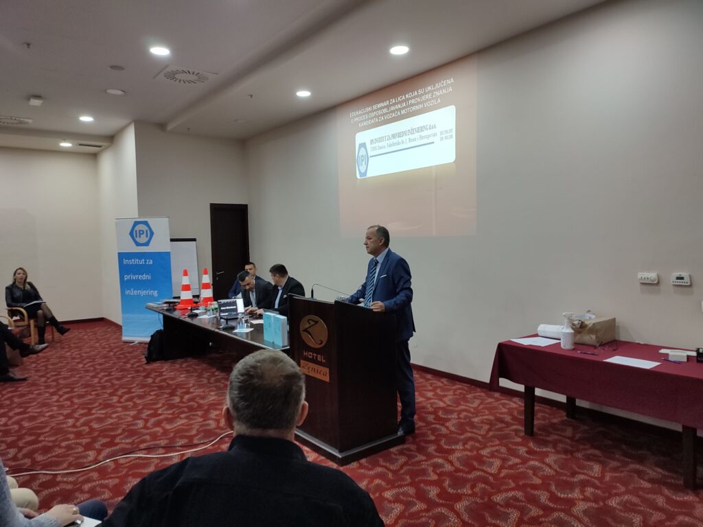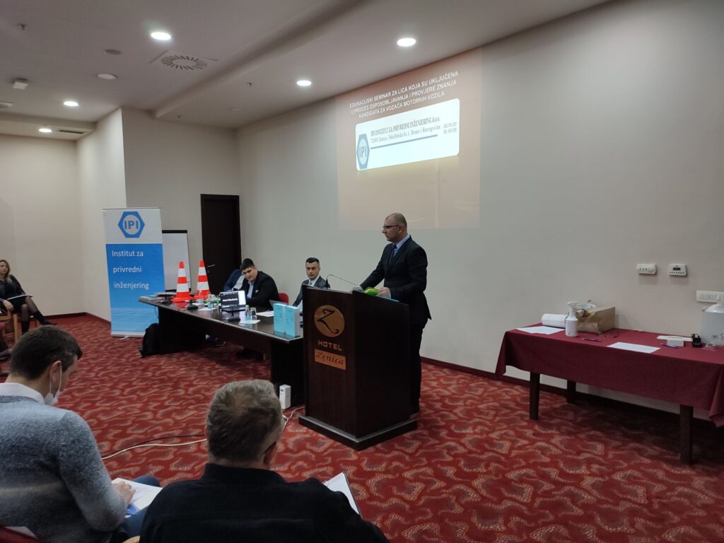 Dana 20.10.2021. godine (srijeda) u periodu od 9:00 do 12:00 sati uz odobrenje Ministarstva za obrazovanje, nauku, kulturu i sport Zeničkodobojskog kantona, Institut za privredni inženjering d.o.o. Zenica je organizirao “Edukacijski seminar za lica koja su uključena u proces osposobljavanja i provjere znanja kandidata za vozača motornih vozila”.