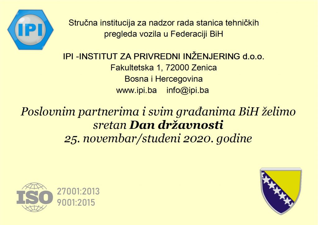 Obavještavamo vas da je srijeda 25.11.2020. godine neradni dan.